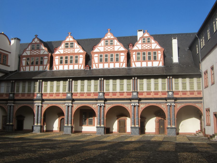 Today's Schloss Weilburg has its roots in the 16th century when already existing sites were extensively altered and expanded. While the plans started out relatively modest, they were altered and expanded rather soon and a four-winged castle was built within 40 years. Out came what is now considered to be one of - if not the - most important Renaissance castles in all of Hesse. During the 17th century, the surroundings of the Schloss were heavily altered and the entire townscape of Weilburg transformed through the construction of numerous administration and functional buildings, a castle church and gardens including two orangeries. The entire complex of the castle and the surrounding town is a prime example of a small Baroque residential city during the age of absolutism. (For more details of the building history, have a look at my Luxarazzi post about Schloss Weilburg.)