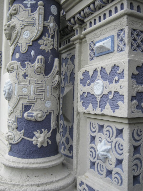 To be honest, I didn't really know about Schloss Bevern's history prior to visiting and in retrospect it actually wasn't that bad but, anyway, read for yourself... My family and I went by there when we visited Schloss Corvey nearby and at the first moment we were positively stunned. The frontal façade looked gorgeous, like one oversized Delft tile, stunning in white and blue. (Needless to say, the pictures are not doing it any justice which is probably due to the fact that it was raining cats and dogs.) However, when we walked around the castle, we suddenly saw this old and dirty side and back façades with the plaster peeling off et al. It all seemed like a case of more appearance than substance.