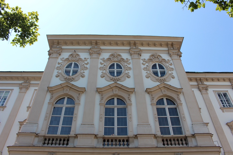 The damaged parts of Schloss Mirabell were then rebuilt in its present neoclassical appearance according to plans by Johann Georg von Hagenauer by Peter de Nobile, the Habsburg court's architectural consultant and director of the Vienna School of Architecture. Details such as the edging of the windows, the capitals and stuccowork still bear witness to the palace's former Baroque splendour.