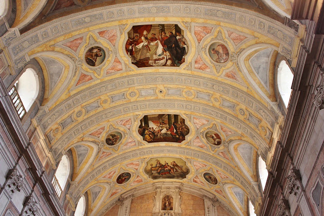 Visiting the church, there's no questioning why it was considered the most expensive church in Europe. There is a lot of gold! And a quite dark ceiling painting with a seemingly botched perspective, I think.